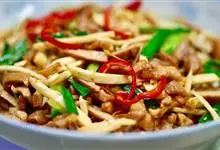 榨菜肉丝是四川省传统的名菜,属于川菜。此菜在四川家庭和中低档饭馆常年制作,原料易得,操作简便,咸淡适口,脆嫩鲜美。全部>>