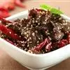 主料:牛肉500克 调料:花生油100克,大葱20克,姜15克,料酒10克,白砂糖25克,芝麻5克,盐10克,辣椒10克,花椒5克,味精2克,辣椒油25克全部>>