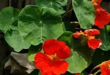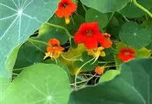 旱金莲是旱金莲科旱金莲属蔓生一年生草本植物。叶互生,叶柄向上扭曲,盾状,叶圆形,具波状浅缺刻,下面疏被毛或有乳点;花黄、紫、桔红或杂色,花托杯状,花瓣为圆形,边缘具缺刻;果实为扁球形;花果期6-10月,…全部>>