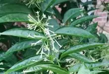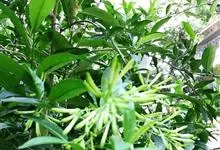 夜香树是茄科、夜香树属直立或近攀援状灌木。枝条细长而下垂。叶有短柄,叶片矩圆状卵形或矩圆状披针形,全缘,顶端渐尖,基部近圆形或宽楔形,两面秃净而发亮,有6-7对侧脉。伞房式聚伞花序,腋生或顶生,…全部>>
