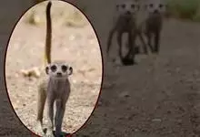 狐獴,是食肉目獴科狐獴属小型哺乳动物。狐獴的眼睛周围有黑色块,新月型的耳朵,修长的躯干和四肢,有着有力、弯曲的爪子,尾巴长细并尖尖延伸到端点,在末端的端点都为黑色。直立时狐獴会用尾巴支撑来保持平衡。…全部>>