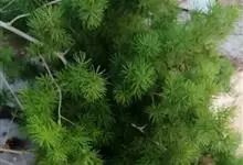 蓬莱松是天门冬科、天门冬属多年生丛生草本植物。宿存,圆柱形肉质根,纵截面为绿色和表面灰色。植株高可达3米。茎呈圆柱形或近四边形,底部木质化,具有灰色或灰褐色。幼嫩的茎在每个节上都被紫绿色鳞片包,…全部>>
