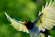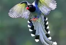 台湾蓝鹊:体长64至65厘米,翼展18至21厘米,尾长约40厘米,尾羽长占了总体长的三分之二。头、脸、颈、喉、胸都是黑色,黄色的眼珠包围黑色的瞳孔,鲜红色的鸟喙、双脚,…全部>>