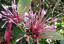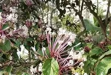 烟火树 Merr.)是唇形科、大青属常绿灌木或小乔木,株高可达4米。幼枝方形,墨绿色。叶对生,长椭圆形或披针形,先端尖,全缘或波状缘。纸质,叶背暗紫红色。聚伞状圆锥花序,顶生,小花多数,聚生成团,…全部>>