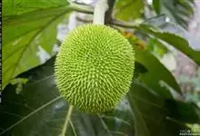 面包树 Fosberg)是桑科波罗蜜属植物。叶大,成熟之叶羽状分裂,表面深绿色,背面浅绿色;穗状花序单生叶腋,雄花序长圆筒形至长椭圆形或棒状;聚花果倒卵圆形或近球形;花期为3~5月,果期为7~10月。…全部>>