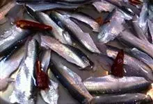 沙丁鱼是鲱科、沙丁鱼属鱼类。为细长的银色小鱼,体长15-30厘米,鳃盖骨上有显著放射状隆起线,背鳍短且仅有一条,无侧线,头部无鳞,体侧圆鳞大小不一。分布于北纬14-68度的海洋区域中。…全部>>