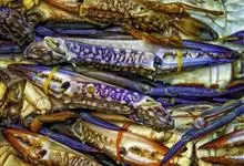 花蟹因外壳有花纹而得名。花蟹有时专指兰花蟹,属于梭子蟹科,但因地域之差异,也有称红花蟹为花蟹。