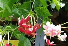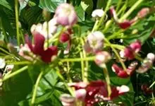 使君子 Jongkind)是使君子科、使君子属攀援灌木,叶对生,椭圆形,两面均被灰白色柔毛。穗状花序,倒挂下垂。花期夏秋。果有五棱,熟时黑色,种子白色。分布于印度、缅甸、菲律宾和中国。喜温润,深根性,…全部>>