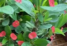 铁海棠为大戟科大戟属蔓生灌木植物;茎多分枝,具纵棱,呈旋转状;叶互生,通常集中于嫩枝上;每个花序基部边缘具微小的红色尖头;苞叶先端圆且具小尖头,无柄,上面鲜红色,下面淡红色;苞片丝状;子房光滑无毛,…全部>>