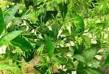 夜香树是茄科、夜香树属直立或近攀援状灌木。枝条细长而下垂。叶有短柄,叶片矩圆状卵形或矩圆状披针形,全缘,顶端渐尖,基部近圆形或宽楔形,两面秃净而发亮,有6-7对侧脉。伞房式聚伞花序,腋生或顶生,…全部>>