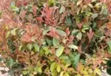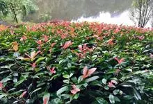 红叶石楠 是蔷薇科,石楠属杂交种,为常绿小乔木或灌木,乔木高可达5米、灌木高可达2米。叶片革质,长圆形至倒卵状、披针形,叶端渐尖,叶基楔形,叶缘有带腺的锯齿,花多而密,复伞房花序,花白色,梨果黄红色,…全部>>
