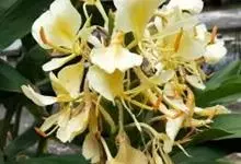 黄姜花:姜科,姜花属多年生草本草本芳香花卉,秋冬季开花,穗状花序,长圆形;苞片长椭圆形,覆瓦状排列,每一苞片内有花3-5朵;花深黄色,形似蝴蝶,气味芬芳纯正,沁人心脾;唇瓣倒心形,黄色,…全部>>