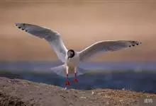 灰背鸥大型水鸟,体长62~69厘米。嘴直,黄色,下嘴先端有红色斑。脚粉红色,头、颈和下体白色,背、肩和翅黑灰色,腰,尾上覆羽和尾白色。冬季头和上胸有褐色纵纹,特别是眼周和后枕较密。飞翔时翅前后缘白色…全部>>