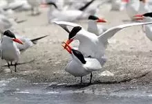 北极燕鸥是属于燕鸥属的一种海鸟。体型中等,体长33-39厘米,翼展76-85厘米。其羽毛主要呈灰色与白色,喙和两脚呈红色,前额呈白色,头顶和颈背呈黑色,腮帮子呈白色。其灰色翅膀为305毫米,肩羽带棕…全部>>