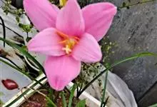 小韭兰学名韭菜莲又名风雨花、菖蒲莲、红玉帘和旱水仙,多年生草本,鳞茎卵球形,基生叶常数枚簇生,线形,扁平,花单生于花茎顶端,下有佛焰苞状总苞,花玫瑰红色或粉红色,蒴果近球形,种子黑色,花期夏秋。韭莲…全部>>