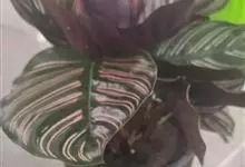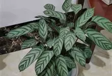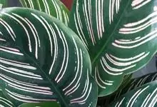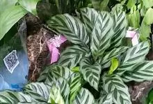 孔雀竹芋:竹芋科,肖竹芋属多年生常绿草本植物。植株挺拔株高可达60厘米。叶柄紫红色, 叶片薄革质,卵状椭圆形,叶面上有墨绿与白色或淡黄相间的羽状斑纹,就像孔雀尾羽毛上的图案,因而得名。…全部>>