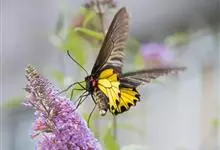 金裳凤蝶是凤蝶科、裳凤蝶属的动物。金裳凤蝶身体呈黑色,头、颈和胸侧有红毛,腹部有黑黄两色相间条纹,雄蝶前翅黑色,具黑天鹅绒光泽,各脉两侧灰白色,后翅金黄色,各室外缘有等腰三角形黑斑1枚,斑内侧有晕,…全部>>