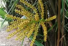 山棕是棕榈科桄榔属植物。丛生灌木,高2-3米。叶羽状全裂,长2-3米,羽片互生,长30-55厘米或更长,宽2-3厘米,基部的羽片较短而狭。花序生于叶间,长30-50厘米,多分枝,分枝长约30厘米,…全部>>