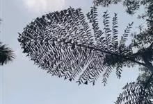 狐尾椰是棕榈科狐尾椰属的常绿乔木;木植高大通直,茎干单生,茎部光滑,有叶痕,略似酒瓶状;叶色亮绿族生茎顶,羽状全裂,小叶披针形,轮生于叶轴上,形似狐尾;穗状花序,分枝较多;雌雄同株;果卵形,…全部>>