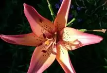 东北百合,别名卷莲花、老哇芋头、轮叶百合、伞蛋花、山丹花,为百合科、百合属多年生球根花卉。鳞茎卵圆形,白色,有节。苞片叶状,花淡橙红色,具紫红色斑点;花被片稍反卷,蒴果倒卵形,花期7-8月,果期9月,…全部>>