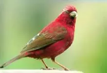 酒红朱雀小型鸟类,体长13~15厘米。雄鸟通体深红色,头部深朱红或棕红色,下背和腰玫瑰红色,眉纹粉红色而具丝绢光泽。两翅和尾黑褐或灰褐色、具暗红色狭缘,内侧两枚三级飞羽具淡粉红色先端。…全部>>
