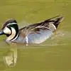 绿翅鸭是小型鸭类,体长37厘米,体重约0.5千克。嘴脚均为黑色。雄鸟头至颈部深栗色,头顶两侧从眼开始有一条宽阔的绿色带斑一直延伸至颈侧,尾下覆羽黑色,两侧各有一黄色三角形斑,在水中游泳时,极为醒目。…全部>>