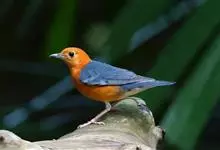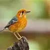 橙头地鸫是鸫科、地鸫属中型鸟类,体长18-22厘米。整个头、颈和下体橙栗色,其余上体包括两翅和尾蓝灰色或橄榄灰色,翅上多具白色翅斑。虹膜褐色或棕褐色,嘴黑褐色或黑色,脚橙黄色或肉黄色。特征极明显。…全部>>