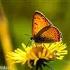 橙灰蝶Lycaena dispar Hauorth,鳞翅目、灰蝶科。这类蝴蝶雌雄异型,雄蝶前翅翅面橙色,顶角向边缘有窄的黑带;后翅基部和臀缘有较宽的黑色区;雌蝶前翅翅面橙色,中室内有2个黑斑,后翅黑…全部>>