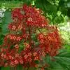 赪桐 Sweet)是唇形科、大青属灌木,高1-4米,叶片圆心形,顶端尖或渐尖,基部心形,边缘有疏短尖齿,表面疏生伏毛,二歧聚伞花序组成顶生,大而开展的圆锥花序,花序的最后侧枝呈总状花序,花萼红色,…全部>>