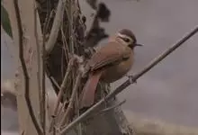 白颊噪鹛是雀形目噪鹛科噪鹛属鸟类,又称土画眉、小画眉、小噪鹃。成鸟额至头顶栗褐色,长眉纹、眼先和颊纹棕白色,眼后至耳羽深褐色,…全部>>