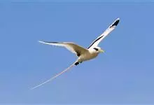 白尾鹲:体重220-410克;体长370-400毫米,加上延长的尾羽为680-990毫米,是一种中型热带海鸟。全身羽毛主要为白色,繁殖期微缀有橙色。眼前和眼后有粗著的黑色斑,像两条粗黑的眼眉。…全部>>