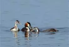 凤头鸊鷉:体长为50厘米以上,体重为0.5-1千克。前额和头顶部黑褐色,枕部两侧的羽毛往后延伸,分别形成束羽冠。脚的位置几乎处于身体末端,尾羽短而不显,趾侧有瓣蹼。瓣蹼十分发达,除了适于游水之外,…全部>>