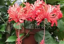 吊灯扶桑 Hook. f.)为锦葵科木槿属的常绿灌木。高达3米;小枝常下垂;叶椭圆形或长圆形,先端尖或短渐尖,基部楔形;花梗细,无毛或具纤毛,中部具节;蒴果长圆柱形;花期全年。因似灯笼高挂,…全部>>