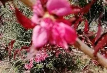 紫叶桃花是李亚科,桃属植物桃的变种,叶为窄椭圆形至披针形,长15厘米,宽4厘米,先端成长而细的尖端,边缘有细齿,暗绿色有光泽,叶基具有蜜腺;树皮暗灰色,随年龄增长出现裂缝;花单生,从淡至深粉红或红色,…全部>>