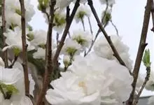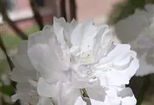 千瓣白桃是李亚科,桃属植物桃的变种,叶为窄椭圆形至披针形,长15厘米,宽4厘米,先端成长而细的尖端,边缘有细齿,暗绿色有光泽,叶基具有蜜腺;树皮暗灰色,随年龄增长出现裂缝;花单生,从淡至深粉红或红色,…全部>>
