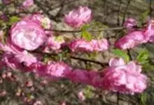 红叶碧桃是蔷薇科李属的一种落叶小乔木,是碧桃的一个变异品种。其小枝呈红褐色,单叶互生,叶片呈卵圆状披针型,在生长初期,叶子为鲜红色。花为重瓣状,呈桃红色。核果为球形,果皮周围有短的茸毛,并且内含蜜汁。…全部>>