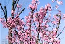 美人梅是蔷薇科李属的落叶小乔木。叶互生,呈广卵形或卵形,紫红色;花呈淡紫红色,半重瓣或重瓣,花叶同放,繁密有香味;果实呈球形,呈鲜红色;花期3-4月;果期5-6月。美人梅原产于美国,…全部>>