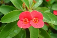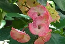铁海棠为大戟科大戟属蔓生灌木植物;茎多分枝,具纵棱,呈旋转状;叶互生,通常集中于嫩枝上;每个花序基部边缘具微小的红色尖头;苞叶先端圆且具小尖头,无柄,上面鲜红色,下面淡红色;苞片丝状;子房光滑无毛,…全部>>
