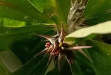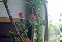 虎刺梅:别称铁海棠,是蔓生灌木植物。茎多分枝,长60-100厘米,直径5-10毫米,具纵棱,密生硬而尖的锥状刺,刺长1-1.5厘米,直径0.5-1.0 毫米,常呈3-5列排列于棱脊上,呈旋转。叶互生…全部>>
