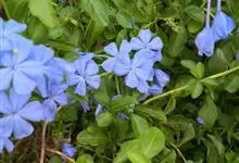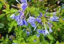 蓝花丹是白花丹科、白花丹属的常绿亚灌木。高约1米;叶薄,呈菱状卵形至狭长卵形;穗状总状花序,总花梗短,花冠淡蓝色至蓝白色,呈倒卵形,苞片呈线状狭长卵形,小苞呈狭卵形或长卵形,…全部>>