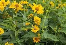 赛菊芋是菊科赛菊芋属多年生草本植物。多分枝;叶对生,长卵圆形,先端圆钝,基部楔形,具长柄,边缘具锯齿,叶面粗糙;头状花序集成伞房状花序;花为黄色;花期夏季;因其外形酷似菊芋,并归类为菊科而得名。…全部>>