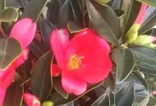 滇山茶:灌木至小乔木,有时高达15米,嫩枝无毛。叶阔椭圆形,上面干后深绿色,发亮,下面深褐色,无毛,侧脉6-7对,边缘有细锯齿。花顶生,红色,直径10厘米,无柄;苞片及萼片10-11片,花瓣红色,…全部>>