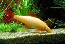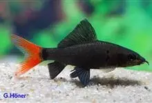 彩虹鲨是鲤形目鲤科野鲮属鱼类,别名红鳍野鲮、红鳍鲨。成鱼体长12厘米,体呈长梭形,侧稍扁。尾鳍呈叉状;背鳍特别宽大,嘴上有两根胡须。鱼体呈浅褐色,各鳍均呈橘红色;雄鱼的臀鳍镶有黑边,…全部>>