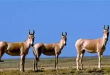 蒙古野驴:是马属动物“亚洲野驴”的指名亚种,外形似骡,体长可达260厘米,肩高约120厘米,尾长80厘米左右,体重约250千克。吻部稍细长,耳长而尖。颈背具短鬃,颈的背侧、肩部、背部为浅黄棕色,…全部>>
