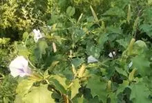 曼陀罗,茄科曼陀罗属一年生大型草本植物,全株光滑。有臭气;叶呈广卯形,边缘具不规则波状浅齿裂;花单生于枝杖间或叶腋,直立,有短梗;花萼是筒状裂片三角形,颜色为白色或淡紫色;果实为蒴果卵状,…全部>>