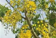 腊肠树:是豆科腊肠树属植物。落叶乔木,高可达15米;枝细长;树皮灰色,老时粗糙,暗褐色。叶长30-40厘米,小叶对生,薄革质,阔卵形,卵形或长圆形,边全缘,幼嫩时两面被微柔毛,老时无毛;叶脉纤细,…全部>>