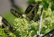 金凤蝶,是鳞翅目凤蝶科凤蝶属动物。金凤蝶为中型凤蝶,翅展70-84毫米,翅背面底色黑褐色,翅脉黑色,翅室具黄斑;前翅背面基部呈暗黄色,亚外缘为黑色,内具一列小黄斑;后翅背面亚外缘区具黑宽边,…全部>>