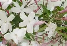 素馨花,木犀科素馨属多年生的攀援灌木植物。攀援灌木,小枝圆柱形,具棱或沟;叶对生,叶轴常具窄翼,小叶片卵形或长卵形;聚伞花序顶生或腋生,花序梗长,苞片线形,花萼无毛,裂片锥状线形,花冠白色,…全部>>