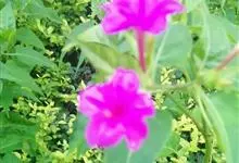 即紫茉莉,英文名:Four-o'clock,Marvel of Peru,为紫茉莉科、紫茉莉属多年生草本植物,一年生栽培。株高50~80cm。根粗壮,茎多分枝而散生。叶对生,卵形或心脏形。花数朵簇生…全部>>