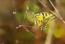 金凤蝶,是鳞翅目凤蝶科凤蝶属动物。金凤蝶为中型凤蝶,翅展70-84毫米,翅背面底色黑褐色,翅脉黑色,翅室具黄斑;前翅背面基部呈暗黄色,亚外缘为黑色,内具一列小黄斑;后翅背面亚外缘区具黑宽边,…全部>>